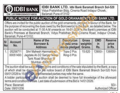 IDBI Bank Gold Auctions Auction in Pune