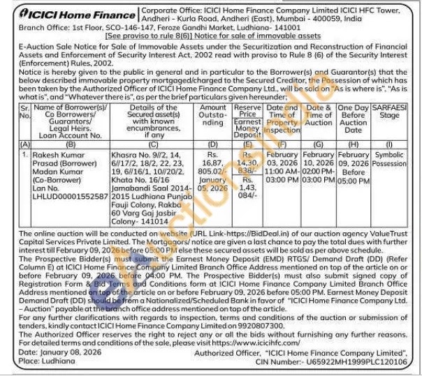 Khasra No. 9//2, 14, 6/17/2, 18/2, 22, 23, 19, 6/16/1, 10//20/2. Khata No. 16/16 Jamabandi Saal 2015 Ludhiana Punjab Fauji Colony, Rakba 60 Varg Gaj Jasbir Colony- 141014