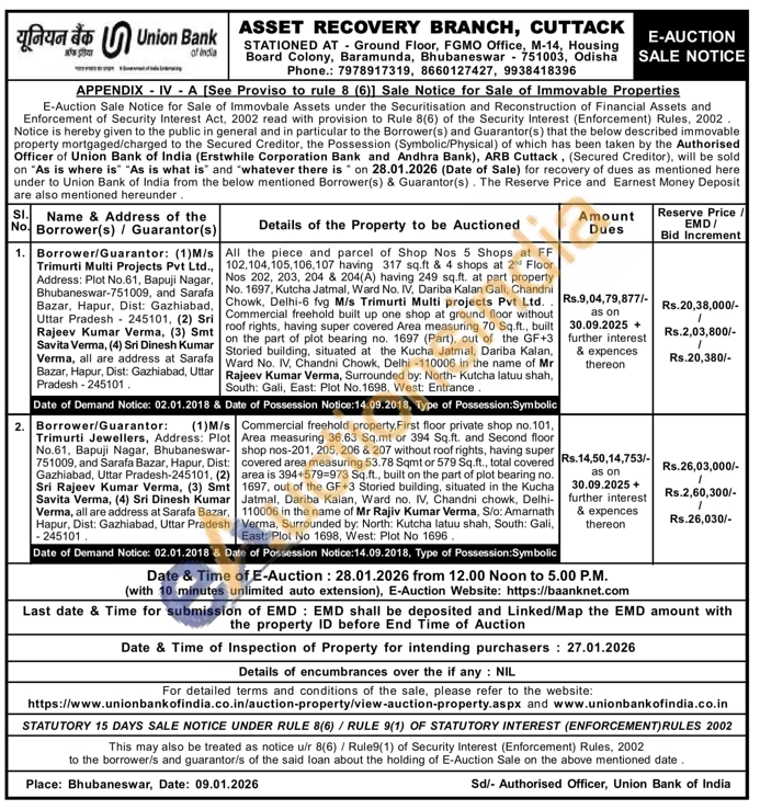 All the piece and parcel of Shop Nos 5 Shops at FF 102, 104,105,106,107 having 317 sq.ft & 4 shops at 2nd Floor Nos 202, 203, 204 & 204(A) having 249 sq.ft. at part property No. 1697, Kutcha Jatmal, Ward No. IV, Dariba Kalan Gali, Chandni Chowk, Delhi-6 fvg M/s Trimurti Multi projects Pvt Ltd. Commercial freehold built up one shop at ground floor without roof rights, having super covered Area measuring 70 Sq.ft., built on the part of plot bearing no. 1697 (Part), out of the GF+3 Storied building, situated at the Kucha Jatmal, Dariba Kalan, Ward No. IV, Chandni Chowk, Delhi-110006 in the name of Mr Rajeev Kumar Verma, Surrounded by: North- Kutcha latuu shah, South: Gali, East: Plot No. 1698, West: Entrance