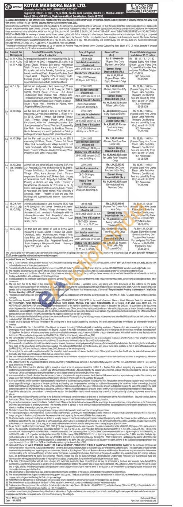 Mr. Lalju Chacko (Mobile No. +91-9037179712) and/or Authorized Officer Mr. BY Arjun Dev (Mobile No. +91-9880963608) or Mr. Pranay Bharucha (Mobile no. +91-7045028097)
