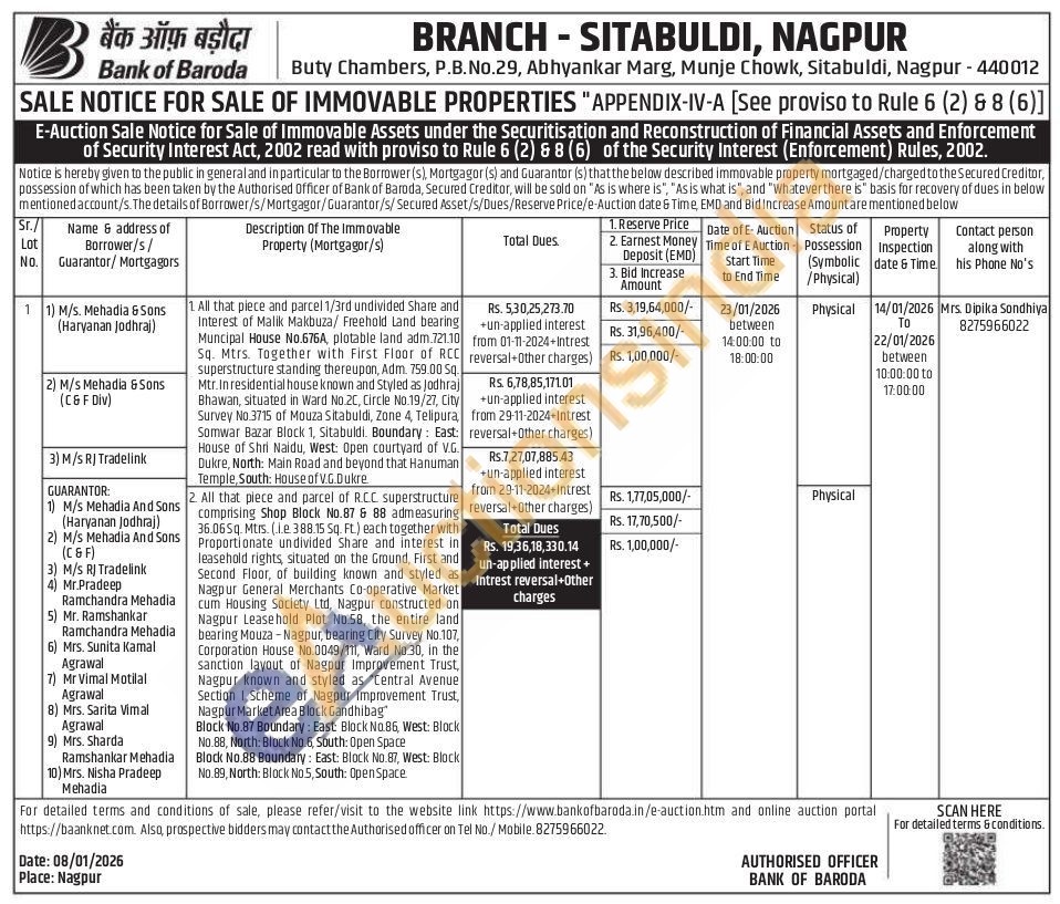 2. All that piece and parcel of R.CC superstructure comprising Shop Block No.87 & 88 admeasuring 36.065q. Mtrs. (le 388.15 Sq. Ft.) each together with Proportionate undivided Share and interest in leasehold rights, situated on the Ground, First and Second Floor, of building known and styled as Nagpur General Merchants Co-operative Market cum Housing Society Ltd, Nagpur constructed on Nagpur Leasehold Plot No.58, the entire land bearing Mouza-Nagpur, bearing City Survey No.107, Corporation House No.0049/111, Ward No.30, in the sanction layout of Nagpur Improvement Trust, Nagpur known and styled as "Central Avenue Section | Scheme of Nagpur Improvement Trust, Nagpur Market Area Block Gandhibag"Block No.87 Boundary: East Block No.86, West: Block No.88, North: Block No.6, South: Open Space Block No.88 Boundary: East: Block No.87, West: Block No. 89, North: Block No5, South: Open Space