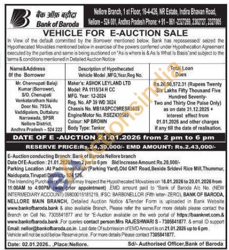 Maker's: ASHOK LEYLAND LTD Model: PA 1115/34 H CC MFG. Year: 12-2024 Reg. No. AP 39 WD 3024 Chassis No. MB1ASPCC9RESR3628 Engine/Motor No. RSEZ430589 Colour: NP BROWN Body Type: Tanker