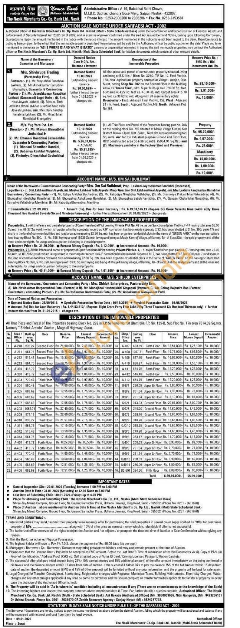 All That Piece and Parcel of The Properties bearing Block No. 292 in T.P. Scheme No. 58 (Bamroli), F.P. No. 135-B, Sub Plot No. 1 in area 7814.39 Sq.mts. Namely" Shhlok Arcade" Sachin, Magdall Highway, Surat.