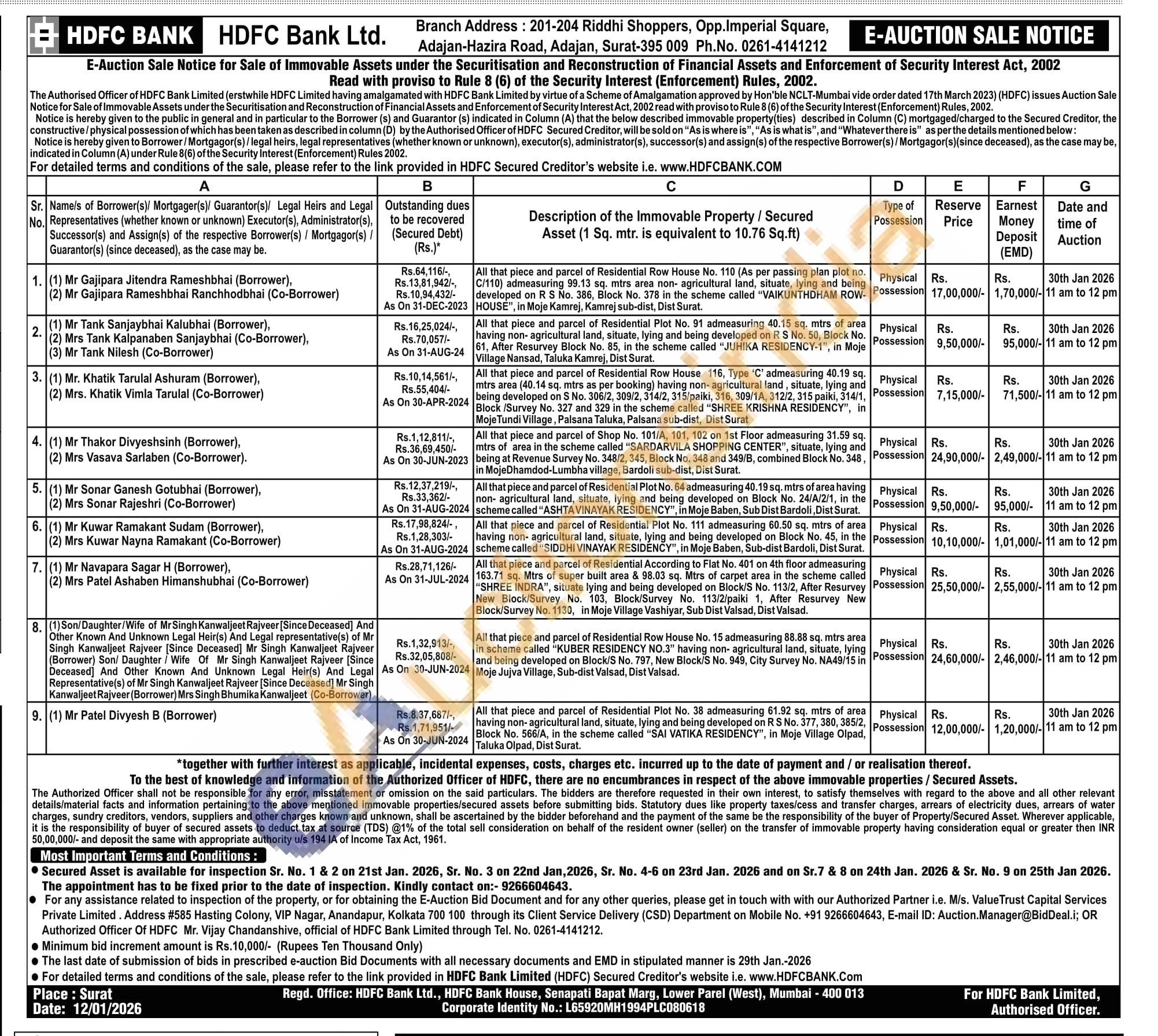 All that piece and parcel of Residential According to Flat No. 401 on 4th floor admeasuring 163.71 sq. Mtrs of super built area & 98.03 sq. Mtrs of carpet area in the scheme called “SHREE INDRA”, situate lying and being developed on Block/S No. 113/2, After Resurvey New Block/Survey No. 103, Block/Survey No. 113/2/paiki 1, After Resurvey New Block/Survey No. 1130, in Moje VillageVashiyar, Sub Dist Valsad, Dist Valsad
