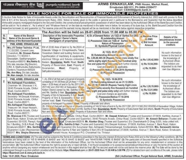 EM of 22.60 Ares of land in Sy No 20214 of Edakode Village in Chirayinkeezhu Taluk Trivandrum District and building thereon and hypothecation of machinery & equipments. electrical fittings and fixtures embedded thereon. Boundaries: North: Road, South: Property of Raveendran, East: Property of Sivanandan, West: Property of Sathyabomeswaran