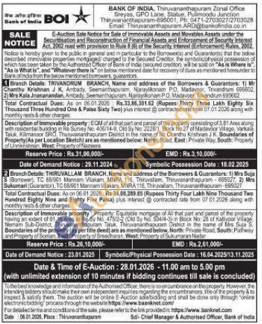 Description of Immovable property Property Sqatable mongage of All that part and parcel of the property having an extent of 91 15 Ares at Re Sy No 4752-2 (Old By No. 504/4-3) in Block No. 28 of Kalivoor Village Nemam Sub-District, Thiruvananthapuram Teluk, Thiruvananthapuram District in the name of Mrs Suja S Boundaries of the property jas per fille deed) are as mentioned bellow, North: Private Raat South: Padhway and Property of Somian East Property of Smecharan, West: Property of Sukumaran Matar