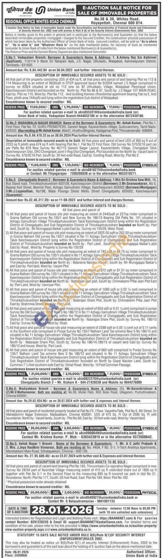 All that piece and parcel of house site plot measuring an extent of 2443sqft or 227sq meter comprised in Grama Natham Old survey No. 135/1 and New Survey No 186/13 Bearing Old Patta No. 101 situated in Azhagu Samudiram Village Thirukkazhukundram Taluk Kancheepuram District lying within the Registration District of Chengalpattu and Sub Registration District of Thirukkazhukundram bounded on North by: Part land, South by: Mr Murugappa Naikar's plot East by: Survey no 135/28, West: Road. 2) All that piece and parcel of house site plot measuring an extent of 2825.50 sqft or 262.50 sq meter comprised in Grama Natham Old survey No. 135/1 situated in No 11 Azhagu Samudiram Village Thirukkazhulkundram Taluk Kancheepuram District lying within the Registration District of Chengalpattu and Sub Registration District of Thirukkazhukundram bounded on North by: Part Land, South by: Mr Murugappa Naikar's plot East by: Road, West by: Property is Survey No 135/28 3) All that piece and parcel of house site plot measuring an extent of 740 sqft or 68.75 sq meter comprised in Grama Natham Old survey No. 135/1 situated in No 11 Azhagu Samudiram Village Thirukkazhukundram Taluk Kancheepuram District lying within the Registration District of Chengalpattu and Sub Registration District of Thirukkazhukundram bounded on North by: Balarama Naicker House, South by: Mr Murugappa Naikar's plot East by: Part land, West by: Vacant Plot 4) All that piece and parcel of house site plot measuring an extent of 872 sqft or 81.01 sq meter comprised in Grama Natham Old survey No.135/1 situated in No 11 Azhagu Samudiram Village Thirukkazhukundram Taluk Kancheepuram District lying within the Registration District of Chengalpattu and Sub Registration District of Thirukkazhukundram bounded on North by Nadarajan jaari plot, South by: Chinnakanni Pillai Jaari Plot East by: Part Land, West by: Vanniyar Plot. 5) All that piece and parcel of house site plot measuring an extent of 1090 sqft or 0.02% cent comprised in Grama Natham Old survey No. 135/1 situated in No 11 Azhagu Samudiram Village Thirukkazhukundram Taluk Kancheepuram District lying within the Registration District of Chengalpattu and Sub Registration District of Thirukkazhukundram bounded on North by: Natarajan Share Plot, South by: Chinnakanni Pillai Jaari Plot East by: Brahmina Street, West by: Part Land. 6) All that piece and parcel of house site plot measuring an extent of 654 sqft or 0.01 % cent comprised in punjal Survey No Old Survey No 135/7 New S No 186/12 in No 11 Azhagu Samudiram Village Thinukkazhukundram Taluk Kancheepuram District lying within the Registration District of Chengalpattu and Sub Registration District of Thirukkazhukundram bounded on North by Natarajan Share Plot, South by: Survey No. 186/13 East by: Survey No 186/11, West by: Road. 7) All that piece and parcel of house site plot measuring an extent of 2398 sqft or 0.05 % cent out of 0.11 cents in the Southern side comprised in Punjai Survey No 135/7 Natham Land Tax scheme New S No 186/12 and situated in No 11 Azhagu Samudiram Village Thirukkazhukundram Taluk Kancheepuram District lying within the Registration District of Chengalpattu and Sub Registration District of Thirukkazhukundram bounded on North by Natarajan Share Plot, South by: Survey No 186/14,186/15 of vacant land East by: Survey No 186/12 and house, West by: Part Land. 8) All that piece and parcel of house site plot measuring an extent of 660 sqft comprised in Punjai Survey No 135/7 Natham Land Tax scheme New S No 186/12 and situated in No 11 Azhagu Samudiram Village Thirukkazhukundram Taluk Kancheepuram District lying within the Registration District of Chengalpattu and Sub Registration District of Thirukkazhukundram bounded on North by Gopal Naicker Land, South by: Common 7% feet southern side East by. Street Road, West by: 10 Feet Common Passage