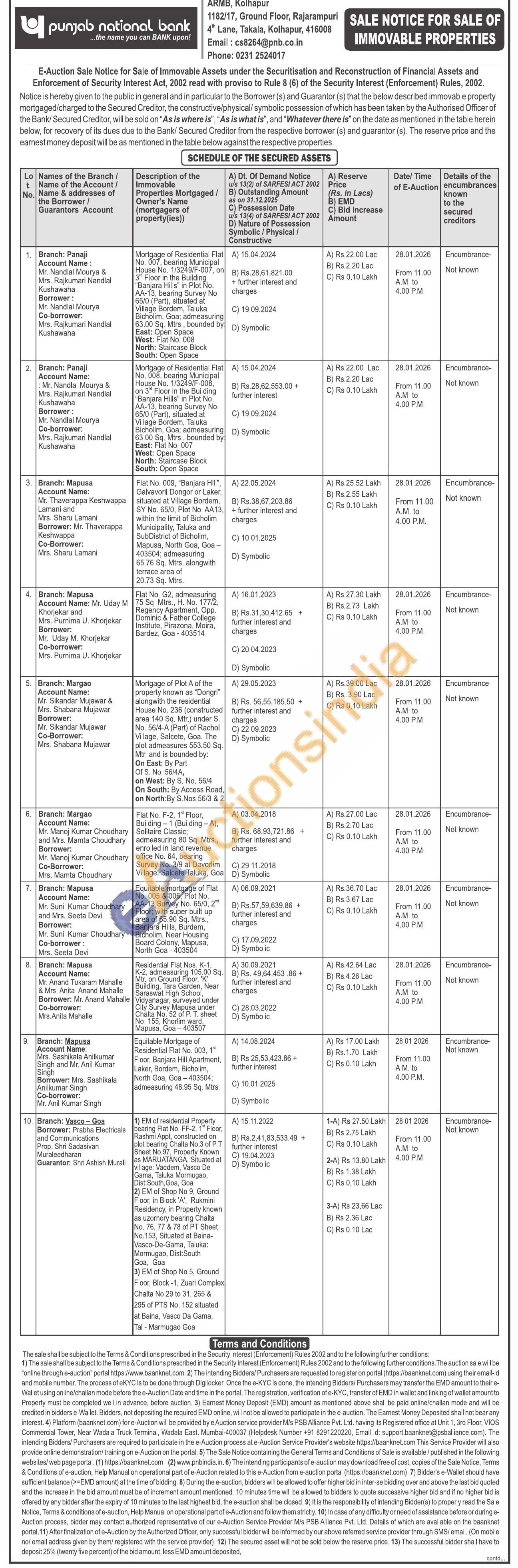 1) Mortgage of Residential Flat No. 007, bearing Municipal House No. 1/3249/F-007, on 3 Floor in the Building "Banjara Hills" in Plot No.. AA-13, bearing Survey No. 65/0 (Part), situated at Village Bordem, Taluka Bicholim, Goa; admeasuring 63.00 Sq. Mtrs, bounded by East: Open Space West: Flat No. 008 North: Staircase Block South: Open Space