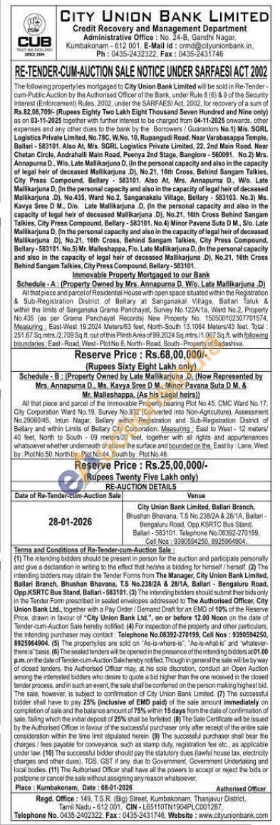 All that piece and parcal of Residential House with open space situated within the Registration & Sub-Registration District of Bellary at Sanganakal Village, Baltan Taluk A within the limits of Sanganaka Grama Panchayat, Survey No 122A/1a, Ward No.2. Property No.435 (as per Grama Panchayat Recorts New New Property No. 150500102307701574 Measuring East-West 18.2024 Meters/63 feet, North-South 13.1064 Meters/43 feet. Total 251.67 Sq.mirs/2,709 Sq.ft out of this Plinth Ares of 99.2024 Somers/1.067 Sq.ft with following boundaries East-Road, Viest-Plot No.6. North-Road, South-Property of Sadashiva.