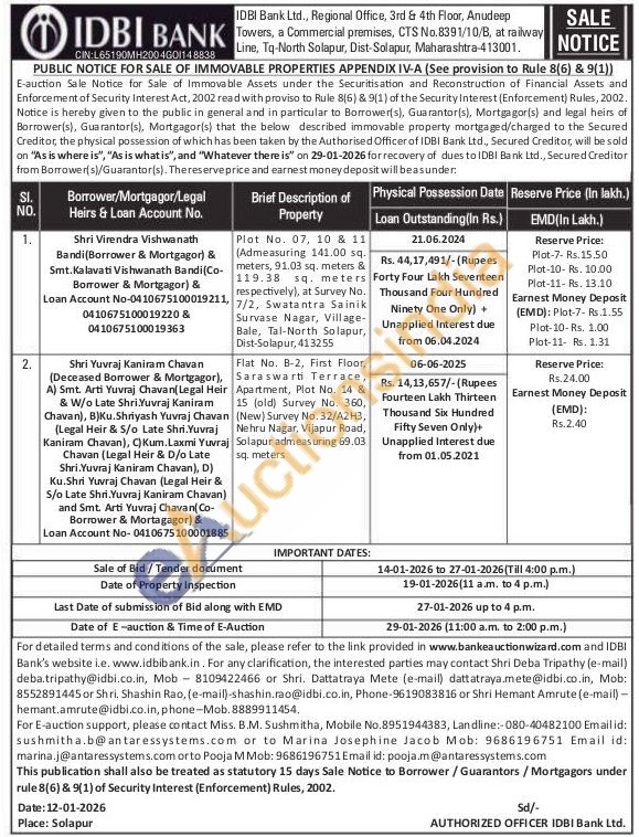 Plot No. 07 (Admeasuring 141.00 sq. meters, 91.03 sq. meters & 119.38 sq. meters respectively), at Survey No. 7/2, Swatantra Sainik Survase Nagar, Village-Bale, Tal-North Solapur, Dist-Solapur, 413255