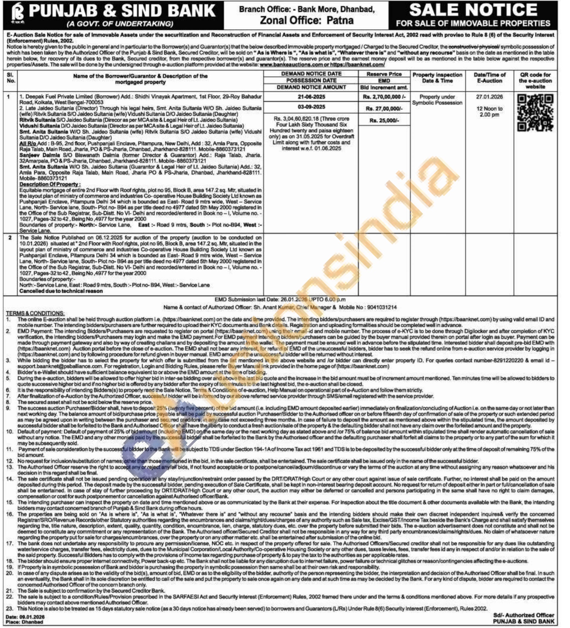 Equitable mortgage of entire 2nd Floor with Roof rights, plot no 95, Block B, ares 147.2sq. Mir, situated in the layout plan of ministry of commerce and industries Co-operative House Building Society Lid known as Pushpanjali Enclave, Pitampura Delhi 34 dave, Pitampura Dethi 34 which is bounded as East-Road 9 mitrs wide, West-Service Lane, North-Service lane, South-Plot no-894 as per title deed no 4977 dated 5th May 2000 registered in the Office of the Sub Registrar, Sub-Distt. No VI- Delhi and recorded entered in Book no 1, Volume no 1027, Pages-32 to 42, Being No 4977 for the year 2000