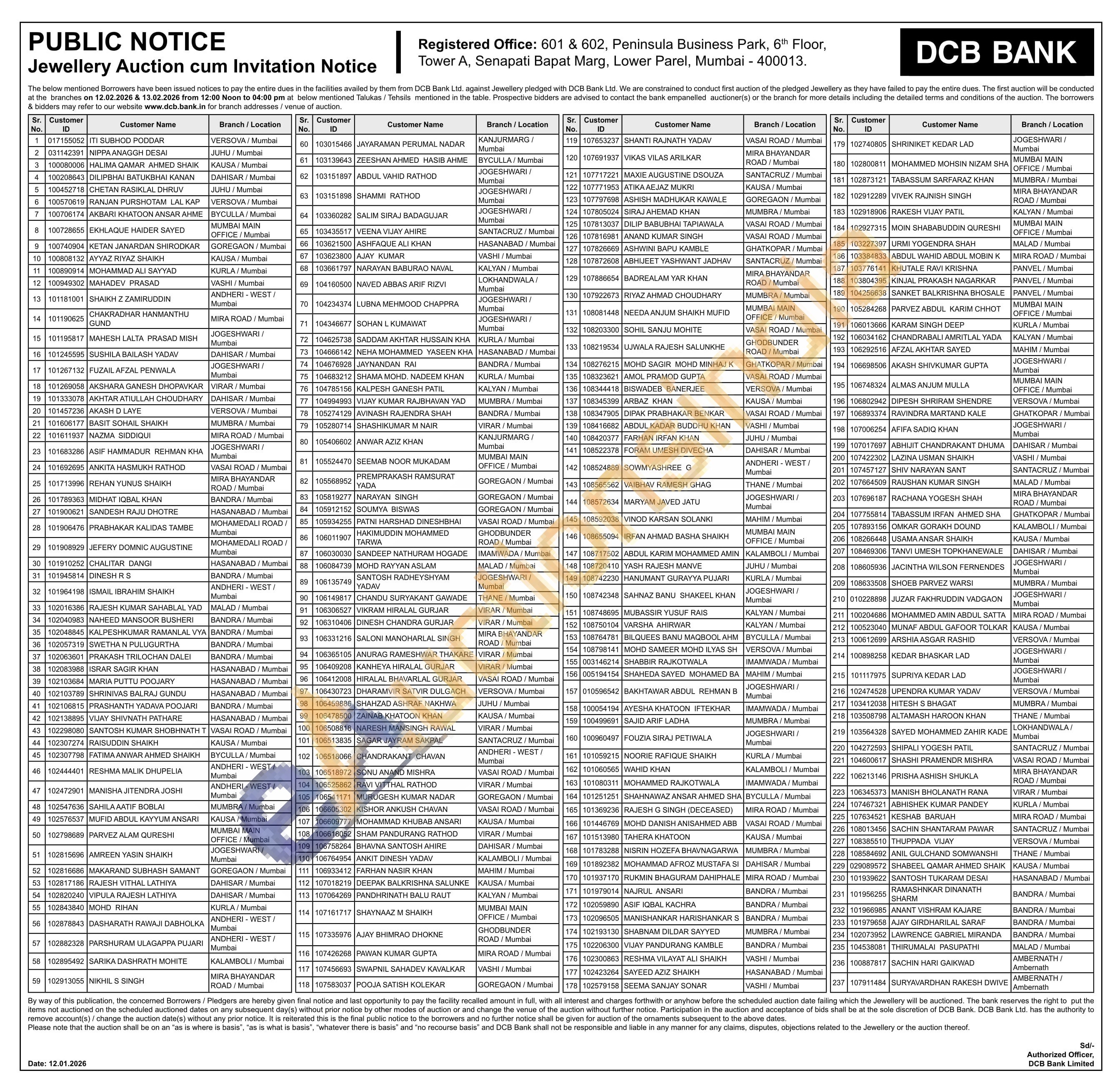 DCB Bank Gold Auctions Auction in Mumbai