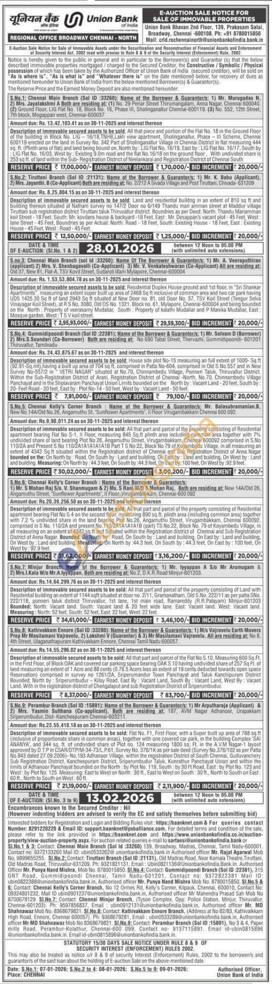 Contact Ph: +91 8780015850 Mail: crid.rochennainorth@unionbankofindia.bank.in