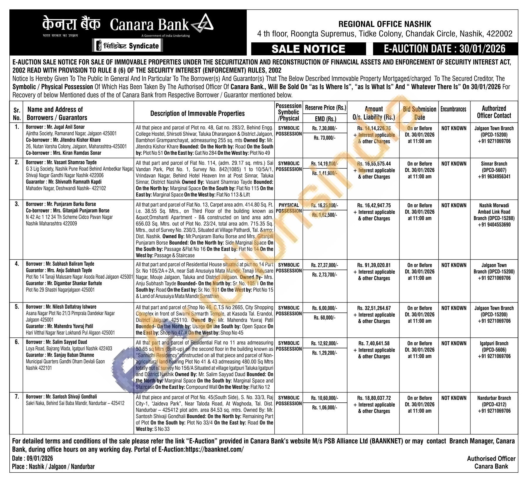 All that part and parcel of Residential Flat no 11 area admeasuring 50.65 sq Mtrs (Built-up) on the second floor in the building known as "Sannidhi Residency constructed on all that piece and parcel of Non-agricultural land bearing Plot No 41 & 43 admeasing 480.00 Sq Mtrs totally out of survey No 156/A Situated at village Igatpuri Taluka Igatpuri and District Nashik Owned By: Mr. Salim Sayyad Daud Bounded: On the North by: Marginal Space On the South by: Marginal Space and Staircase On the East by: Compound Wall On the West by: Flat No 12