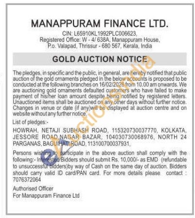 Manappuram Finance Ltd Gold Auctions Auction in Howrah