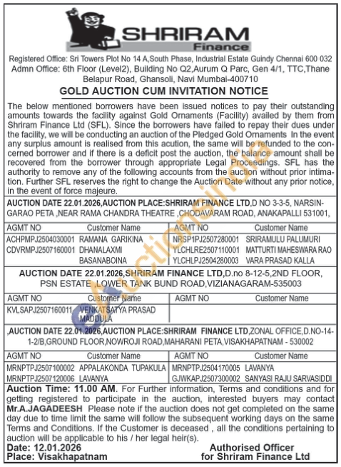 Shriram Finance Ltd Gold Auctions Auction in Visakhapatnam