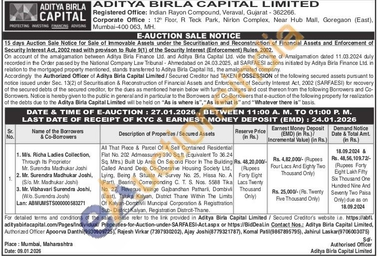 Authorized Officer Apoorva Danthi (9930909725) / Rajesh Virkar (7397930202) / Ajay Joshi (8779321787) / Komal Patil (9867895795) / Jahirul Laskar (9706003075)