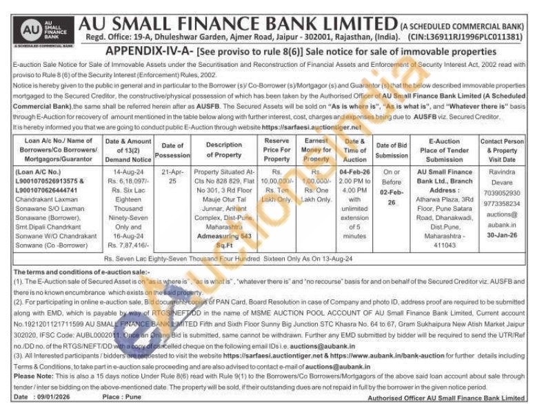 Property Situated At-Cts No 826 829, Flat No 301, 3 Rd Floor Mauje Otur Tal Junnar, Arihant Complex, Dist-Pune, Maharashtra Admeasuring 543 Sq Ft