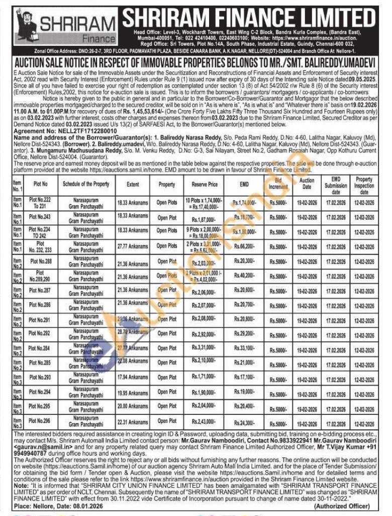 contact person: Mr.Gaurav Namboodiri, Contact No.9833922941 contact Shriram Finance Limited Authorized Officer, Mr T.Vijay Kumar +91 9949940787