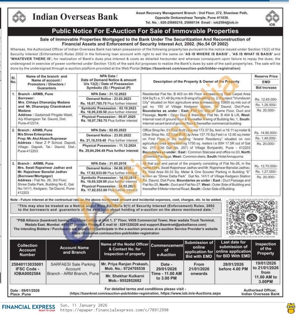 All that part and parcel of the property consisting of Flat No-26, in the name if Mrs. Swati Rajeshwar Jadhav and Mr. Rajeshwar Bansilal Jadhav, it's Total Area 50.33 Sq. Meter & One Scooter Parking in Building "E" known as "Shree Datta Park" Gat No. 141/1 of Village Kedgaon Station Tal. Daund. Dist Pune, Boundaries as under: East: Duct Passage and Flat No-25, North: Duct and Flat No-27, West: Outer Side of Building and thereafter 9 Meter internal Road, South: Outer Side of Building
