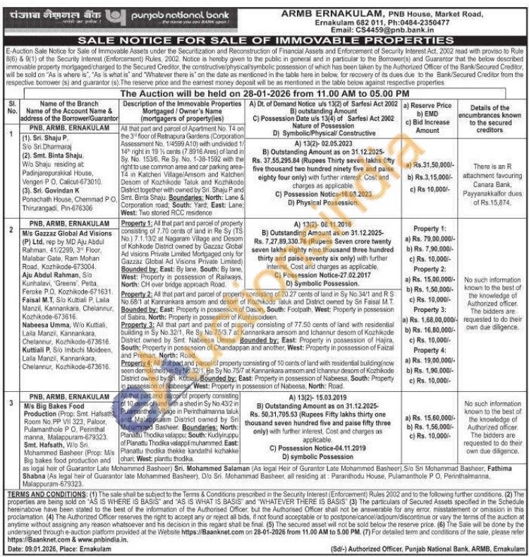 Property 1: All that part and parcel of property consisting of 7.70 cents of land in Re Sy (TS No.) 7.1.13/2 at Nagaram Vilage and Desom of Kohikode District owned by Gazzaz Global Ad visions Private Limited Mortgaged only for Gazzaz Global Ad Visions Private Limited) Bounded by: East: By lane, South: By Isne, West: Property in possession of Railways, North: CH over bridge approach Road