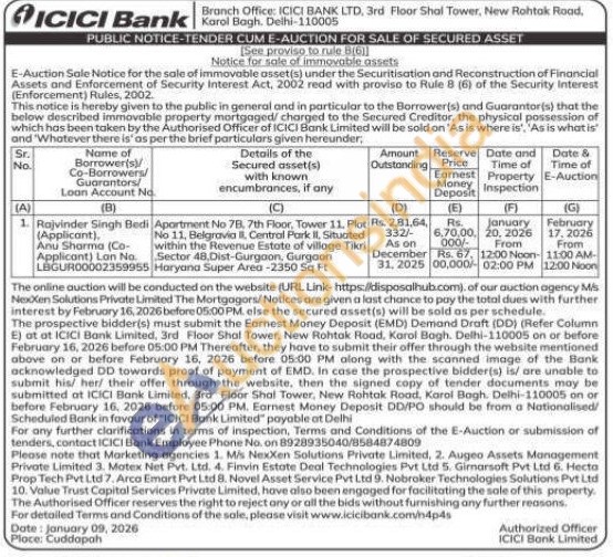 Apartment No 78, 7th Floor, Tower 11. Plot No 11, Belgravia II, Central Park II. Situated within the Revenue Estate of village Tikri Sector 48, Dist-Gurgaon, Gurgaon Haryana Super Area-2350 Sq Ft