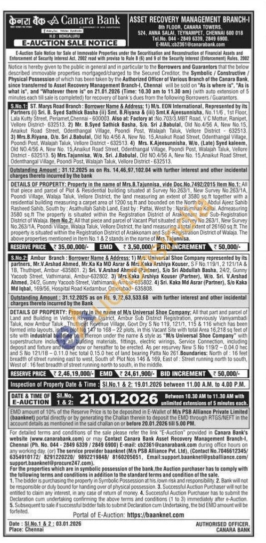 2) All that part and parcel of Land and Building in Vellore Revenue District, Ambur Sub District Registration, previously Vaniyambadi Taluk, now Ambur Taluk, Thuthipet Revenue Village, Govt Dry S No 119, 121/1, 115 & 116 which has been formed into layouts, in this plot No 147 to 168-22 plots, in this Vacant Site with total Area 16.218 sq feet of site with industrial building built thereon under the name & style as "M/s Universal Shoe Company" with superstructure including all building materials, fittings, electric wirings, Service Connection, including deposit and fixture and fitting now or hereafter to be erected. As per resurvey New S No 119/2-0.04.0 hec and S No 121/18-0.11.0 hec total 0.15.0 hec of land bearing Patta No 261 Boundaries: North of: 16 feet breadth of street running east to west, South of: Plot Nos 146 & 169, East of Street running north to south, West of: 16 feet breadth of street running north to south, in the middle.