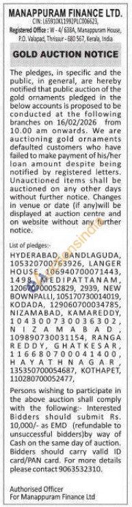 Manappuram Finance Ltd Gold Auctions Auction in Hyderabad