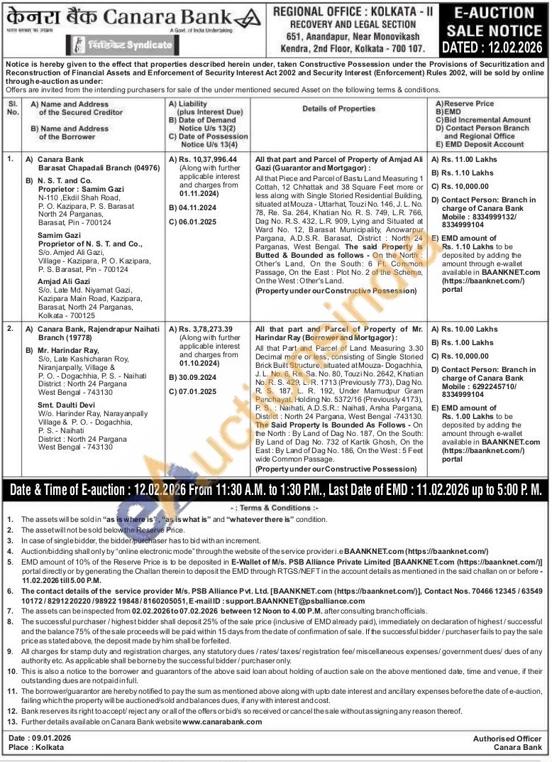 All that part and Parcel of Property of Mr. Harindar Ray (Borrower and Mortgagor): All that Part and Parcel of Land Measuring 3.30 Decimal more or less, consisting of Single Storied Brick Built Structure, situated at Mouza- Dogachhia, J. L. No. 6, Re. Sa. No. 80, Touzi No. 2642, Khatian No. R. S. 429, L. R. 1713 (Previously 773), Dag No. R. S. 187, L. R. 192, Under Mamudpur Gram Panchayat, Holding No. 5372/16 (Previously 4173), P. S. Naihati, A.D.S.R: Naihati, Arsha Pargana, District: North 24 Pargana, West Bengal -743130 The Said Property Is Bounded As Follows. On the North By Land of Dag No. 187, On the South By Land of Dag No. 732 of Kartik Ghosh, On the East: By Land of Dag No. 186, On the West: 5 Feet wide Common Passage