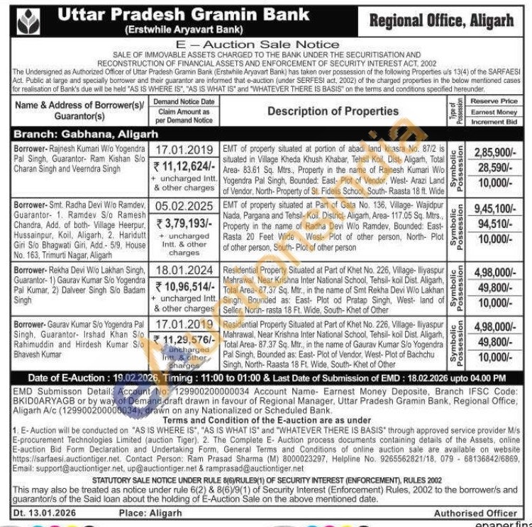 EMT of property situated at portion of abadi land khasra No. 87/2 is situated in Village Kheda Khush Khabar, Tehsil Koil, Dist- Aligarh, Total Area- 83.61 Sq. Mtrs., Property in the name of Rajnesh Kumari Wo Yogendra Pal Singh, Bounded: East- Plot of Vendor, West- Arazi Land of Vendor, North-Property of St. Fidelis School, South- Raasta 18 ft. Wide
