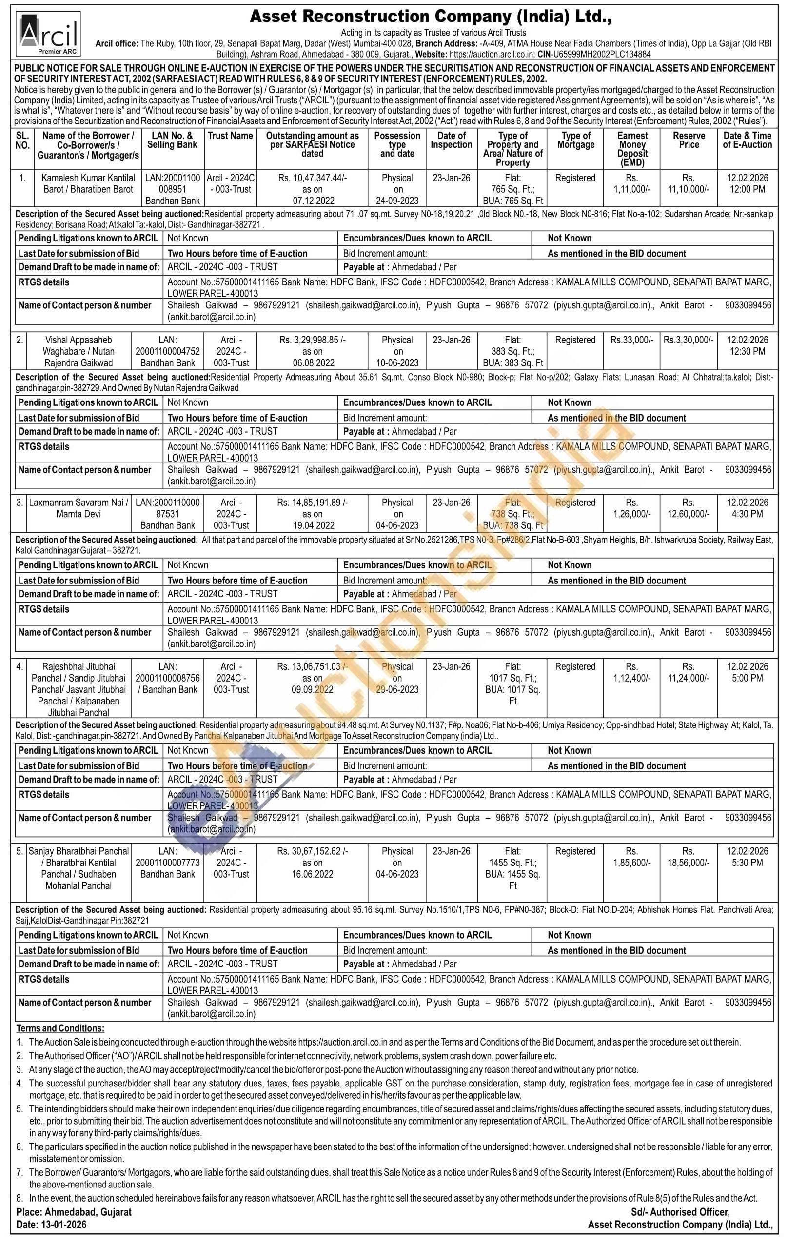Description of the Secured Asset being auctioned: Residential property admeasuring about 71.07 sq.mt. Survey N0-18,19,20,21,0ld Block NO.-18, New Block N0-816; Flat No-a-102; Sudarshan Arcade; Nr:-sankalp