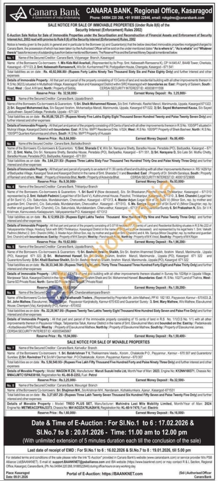 Details of Immovable Property: All that part and parcel of the immovable property consisting of 15 cents of land in R.S. No. 1/1(O.S No. 1/1) with all other improvements thereon in Payyavoor Village, Taliparamba Taluk, Kannur District in the name of Smt. Elavukunnel Mary and bounded on the: East by: Padankavala -Kottadikavala PWD Road, West by: Property of Elavukunnel Mathew, North by: Property of Elavukunnel Mathew, South by: Property of Elavukunnel James.