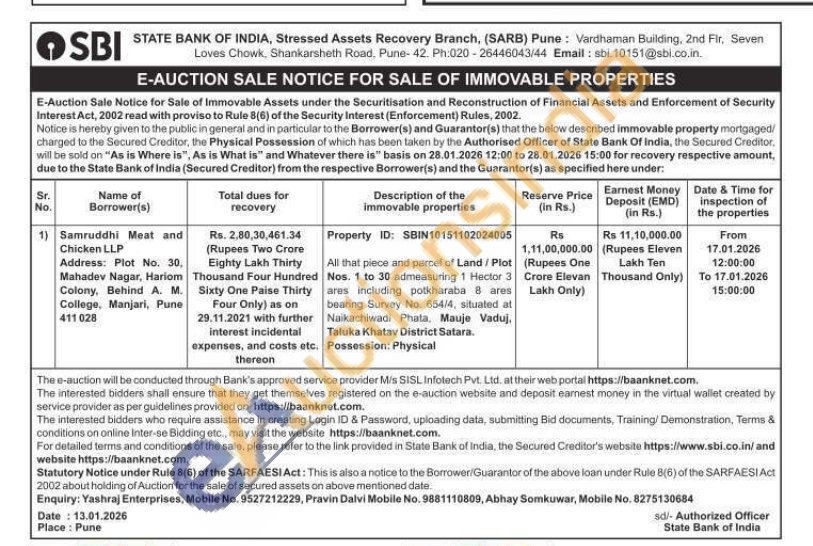 All that piece and parcel of Land/Plot Nos. 1 to 30 admeasuring 1 Hector 3 ares including potkharaba 8 ares bearing Survey No. 654/4, situated at Naikachiwadi Phata, Mauje Vaduj, Taluka Khatav District Satara. Possession: Physical