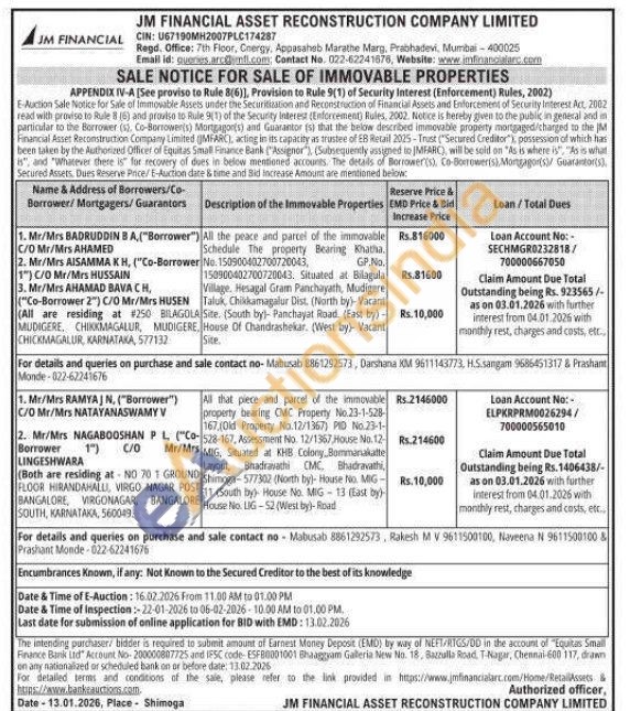 All that piece and parcel of the immovable property bearing CMC Property No.23-1-528-167.(Old Property No.12/1367) PD No.23-1-528-167, Assessment No. 12/1367, House No. 12-MIG, Situated at KHB Colony Bommanakatte Layout, Bhadravathi CMC, Bhadravathi, Shimoga-577302 (North by)- House No. MIG -11 (South by House No. MIG-13 (East by) House No. LIG-52 (West by)-Road