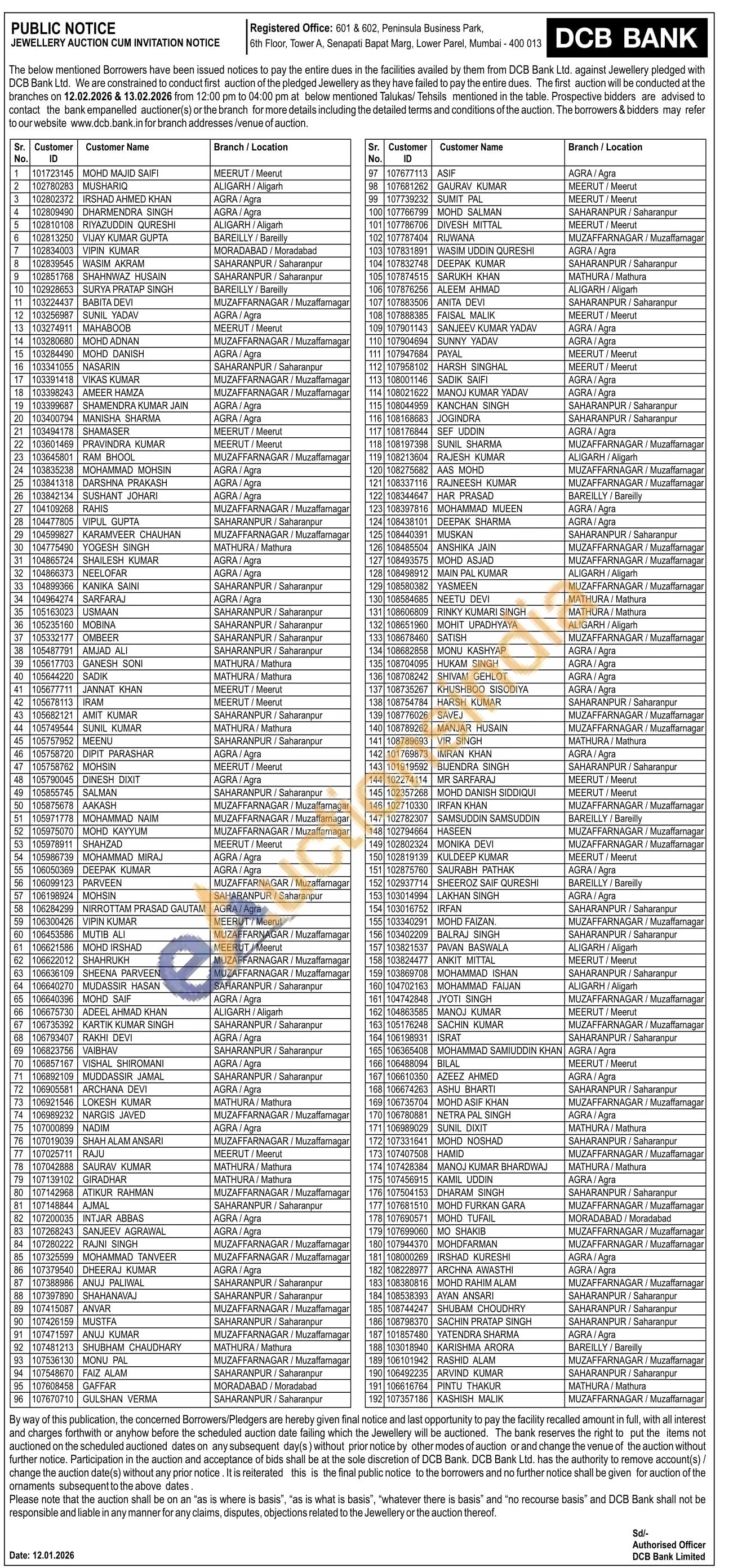 DCB Bank Gold Auctions Auction in Jalandhar