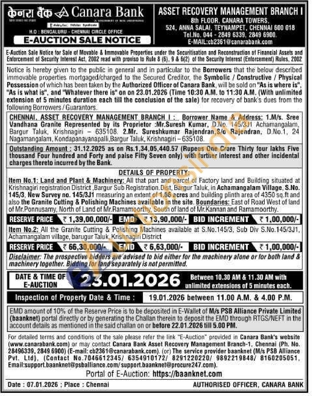 Item No.2: All the Granite Cutting & Polishing Machines available at S.No.145/3, Sub Div S.No.145/3J1, Achamangalam village, barugur Taluk, Krishnagiri District