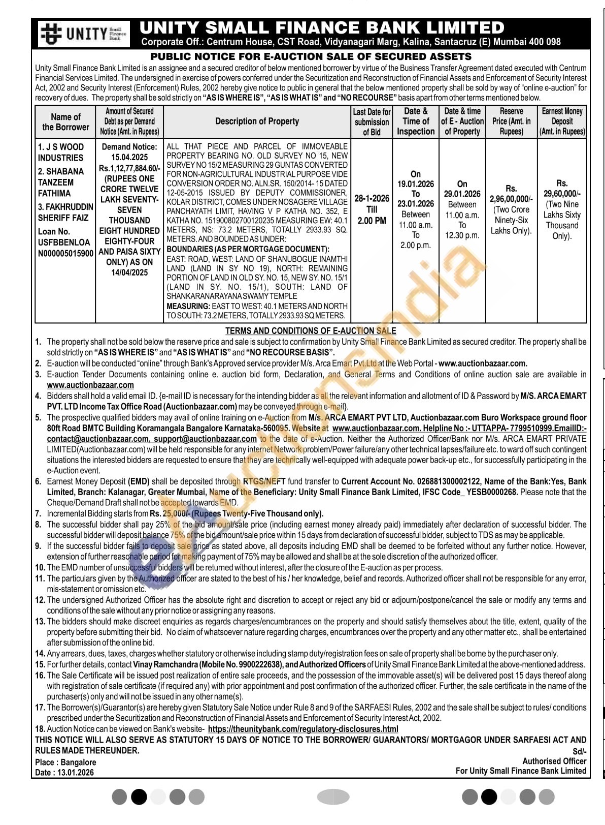 ALL THAT PIECE AND PARCEL OF IMMOVEABLE PROPERTY BEARING NO, OLD SURVEY NO 15, NEW SURVEY NO 15/2 MEASURING 29 GUNTAS CONVERTED FOR NON-AGRICULTURAL INDUSTRIAL PURPOSE VIDE CONVERSION ORDER NO. ALN.SR. 150/2014-15 DATED 12-05-2015 ISSUED BY DEPUTY COMMISSIONER, KOLAR DISTRICT, COMES UNDER NOSAGERE VILLAGE PANCHAYATH LIMIT, HAVING VP KATHA NO. 352, E KATHA NO. 151900802700120235 MEASURING EW: 40.1 METERS, NS: 73.2 METERS, TOTALLY 2933.93 SQ. METERS. AND BOUNDED AS UNDER: BOUNDARIES (AS PER MORTGAGE DOCUMENT): EAST: ROAD, WEST: LAND OF SHANUBOGUE INAMTHI LAND (LAND IN SY NO 19), NORTH: REMAINING PORTION OF LAND IN OLD SY. NO. 15, NEW SY. NO. 15/1 (LAND IN SY, NO. 15/1), SOUTH: LAND OF SHANKARANARAYANA SWAMY TEMPLE MEASURING: EAST TO WEST: 40.1 METERS AND NORTH TO SOUTH: 73.2 METERS, TOTALLY 2933.93 SQ METERS.