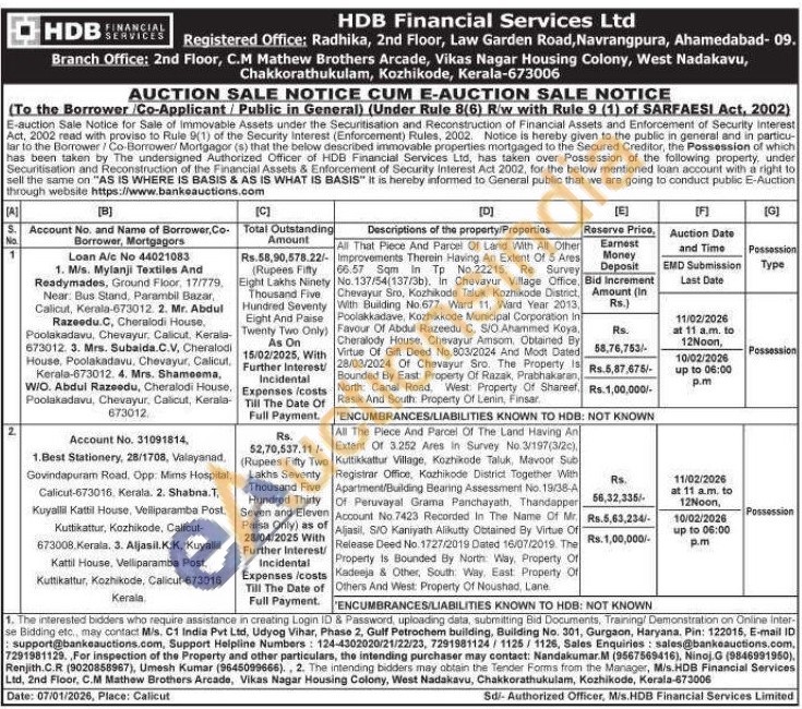 All The Piece And Parcel Of The Land Having An Extent Of 3.252 Ares In Survey No. 3/197(3/20) Kuttikkattur Village, Kozhikode Taluk, Mavoor Sub Registrar Office, Kozhikode District Together With Apartment/Building Bearing Assessment No. 19/38-A Of Peruvayal Grama Panchayath, Thandapper Account No.7423 Recorded In The Name Of Mr. Aljasil, S/O Kaniyath Alikutty Obtained By Virtue Of Release Deed No. 1727/2019 Dated 16/07/2019. The Property Is Bounded By North Way, Property Of Kadeeja & Other, South Way. East Property Of Others And West: Property Of Noushad, Lane