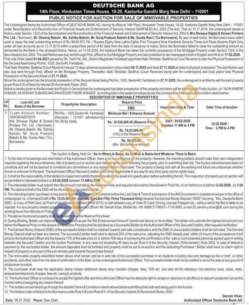 Authorized Officer: Mr. Danish Khan; Mobile No: +91 9999721786 / 01171109563