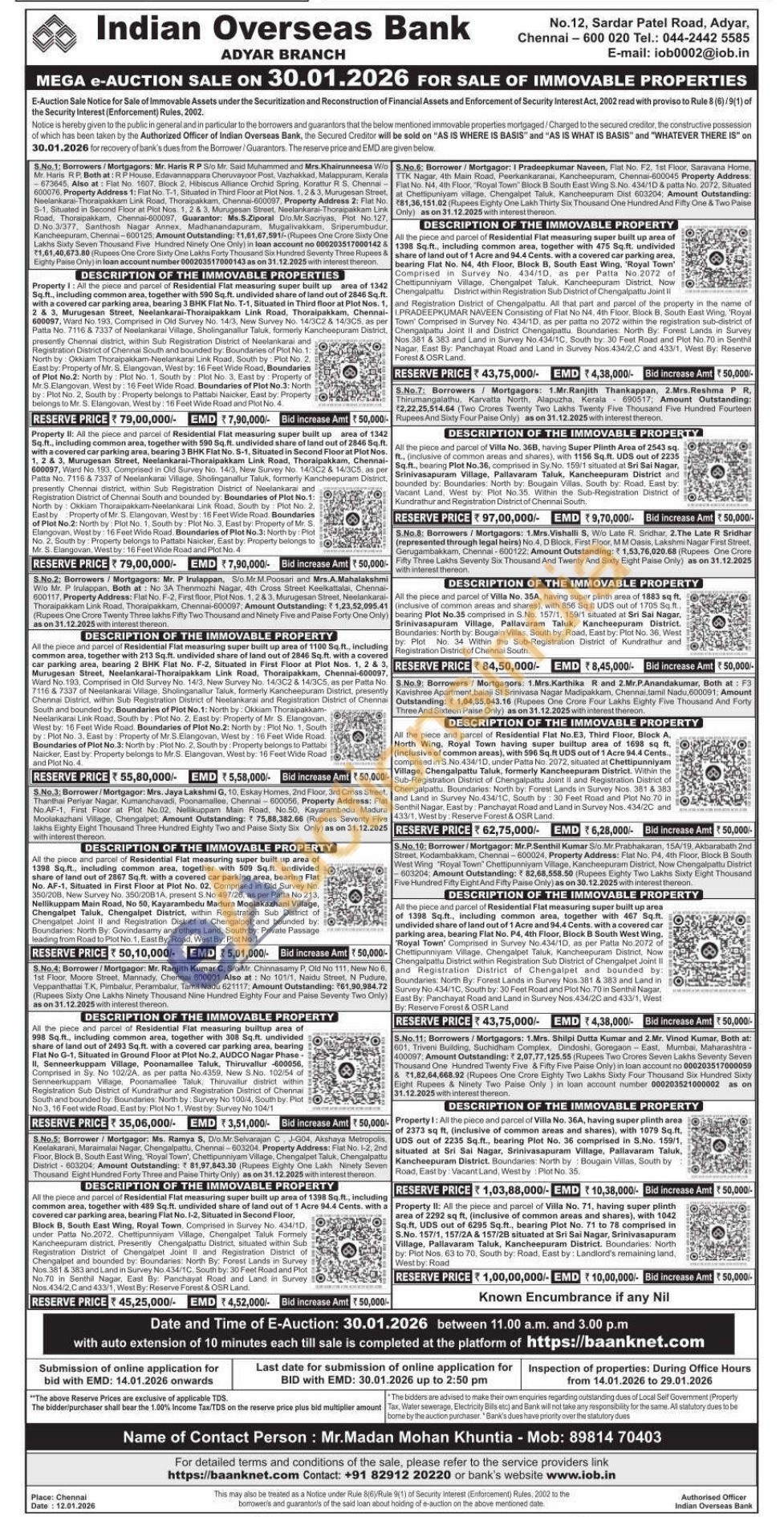 11) Property II: All the piece and parcel of Villa No. 71, having super plinth area of 2292 sq ft, (inclusive of common areas and shares), with 1042 Sq.ft. UDS out of 6295 Sq.ft., bearing Plot No. 71 to 78 comprised in S.No. 157/1, 157/2A & 157/28 situated at Sri Sai Nagar, Srinivasapuram Village, Pallavaram Taluk, Kancheepuram District. Boundaries: North by: Plot Nos. 63 to 70, South by: Road, East by: Landlord's remaining land, West by: Road
