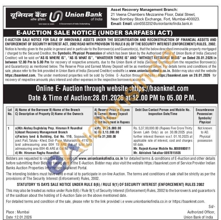 Factory land & Building, Gut No. 110. Sopavasti, At post: Pait, Taluka Khed, Dist-Pune, Maharashtra -411019 land admeasuring area 00H 15 ARE out of total land admeasuring area 00H 45 ARE at Gat No 110.