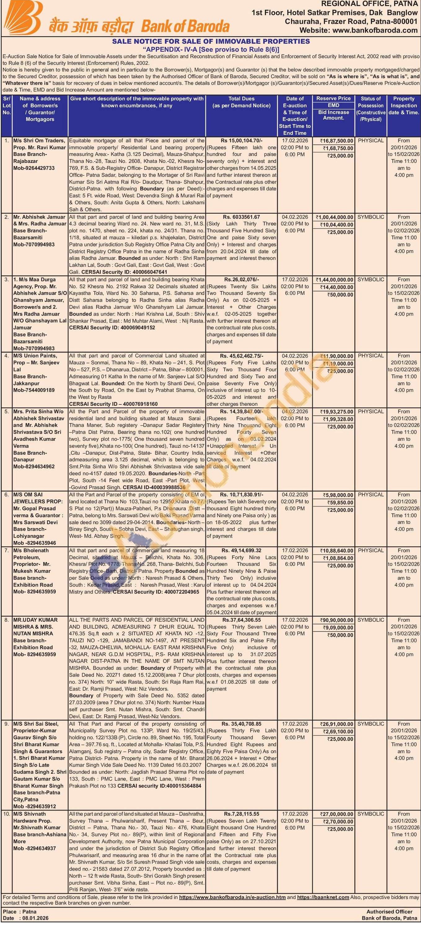 All that part and parcel of commercial land measuring 18 Decimal, situated at Mauza Belchhi Khata No. 306, ( Khasra Plot No. 1778, Thana No. 268. Thana-Belchhi, Sub F Registry Office-Barh, District-Patna Property Bounded as per Sale Deed as under: North Namesh Prasad & Others. T South: Kedar Prasad, East: Naresh Prasad, West: Karujo Mistry and Others. CERSAI Security ID: 400072204965