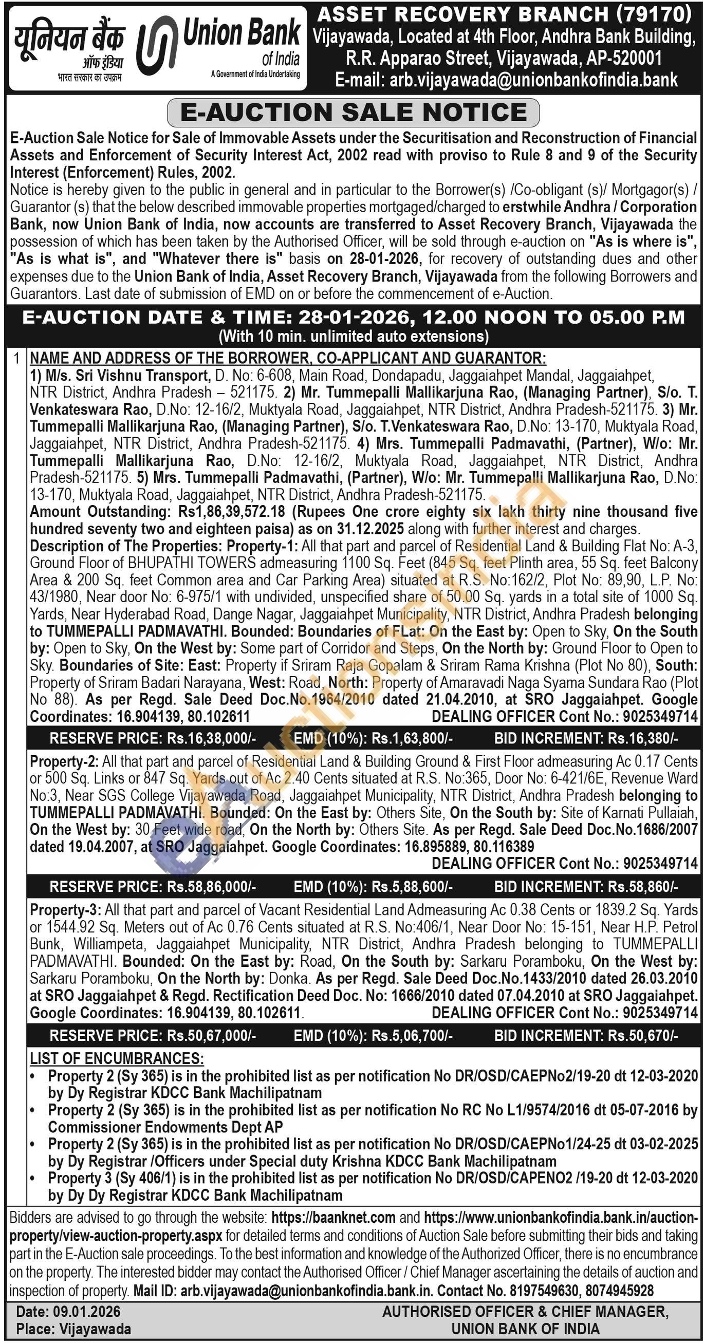 All that part and parcel of Residential Land & Building Ground & First Floor admeasuring Ac 0.17 Cents or 500 Sq. Links or 847 Sq. Yards out of Ac 2.40 Cents situated at R.S. No:365, Door No: 6-421/6E, Revenue Ward No:3, Near SGS College Vijayawada Road, Jaggaiahpet Municipality, NTR District, Andhra Pradesh belonging to TUMMEPALLI PADMAVATHI. Bounded: On the East by: Others Site, On the South by: Site of Karnati Pullaiah. On the West by: 30 Feet wide road, On the North by: Others Site. As per Regd. Sale Deed Doc. No.1686/2007 dated 19.04.2007, at SRO Jaggaiahpet. Google Coordinates: 16.895889, 80.116389