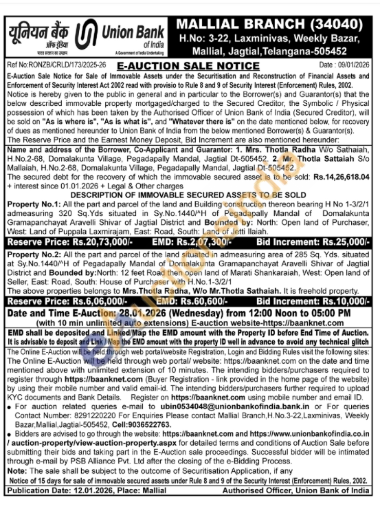 All the part and parcel of the land and Building construction thereon bearing H No 1-3/2/1 admeasuring 320 Sq. Yds situated in Sy. No. 1440/^H of Pegadapally Mandal of Domalakunta Gramapanchayat Aravelli Shivar of Jagtial District and Bounded by: North: Open land of Purchaser, West: Land of Puppala Laxmirajam, East: Road, South: Land of Jetti Ilaiah.