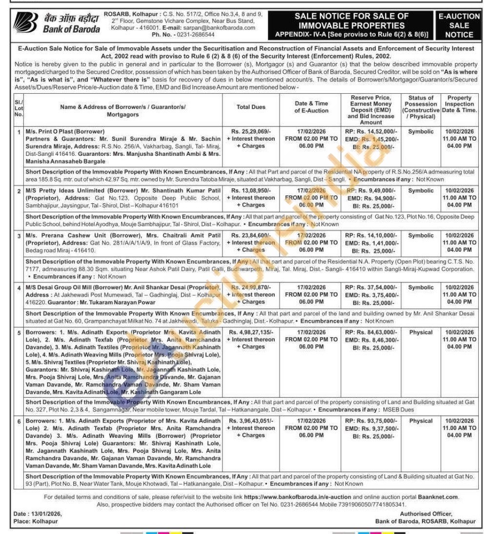 Short Description of the Immovable Property With Known Encumbrances, If Any: All that Part and parcel of the Residential NA property of R.S.No. 256/A admeasuring total area 185.8 Sq. mtr. out of which 42.97 Sq. mtr, owned by Mr. Surendra Tatoba Miraje, situated at Vakharbag, Sangli, Dist-Sangli. Encumbrances if any: Not Known
