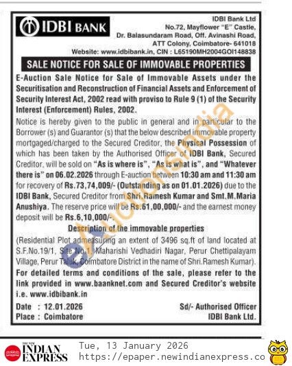 (Residential Plot admeasuring an extent of 3496 sq.ft of land located at S.F.No.19/1, Site No.1, Maharishi Vedhadiri Nagar, Perur Chettipalayam Village, Perur Taluk, Coimbatore District in the name of Shri. Ramesh Kumar).