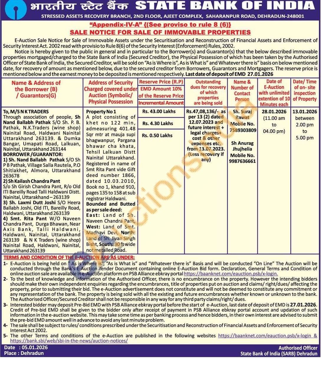 A plot consisting of khet no 122 min, admeasuring 401.48 Sqr mtr at mauja supi bhagwanpur, Pargana bhawar cha khata, Tehsil Lalkuan Distt Nainital Uttarakhand. Registered in name of Smt Rita Pant vide Gift deed number 1866, dated 10.03.2010, Book no 1, khand 910, pages 135 to 158 at sub registrar Haldwani.