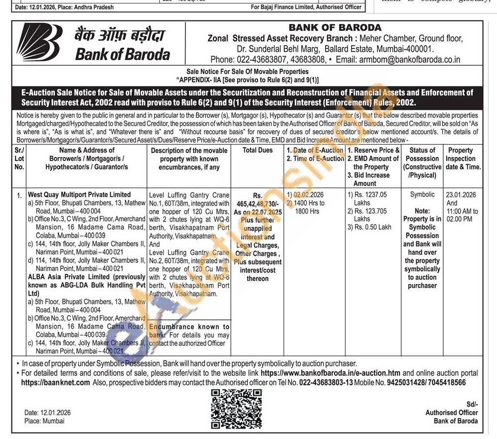 Level Luffing Gantry Crane No.1, 60T/38m, integrated with one hopper of 120 Cu Mtrs. with 2 chutes lying at WQ-6 berth, Visakhapatnam Port Authority, Visakhapatnam.
