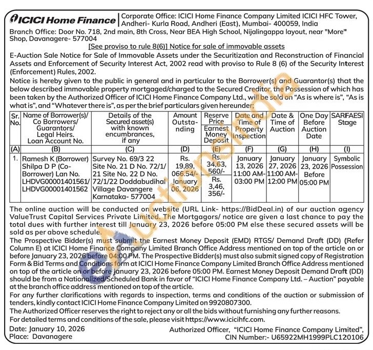 Survey No. 69/3 22 Site No. 21 D No. 72/1/21 Site No. 22 D No. 72/1/22 Doddabudihal Village Davangere Karnataka-577004