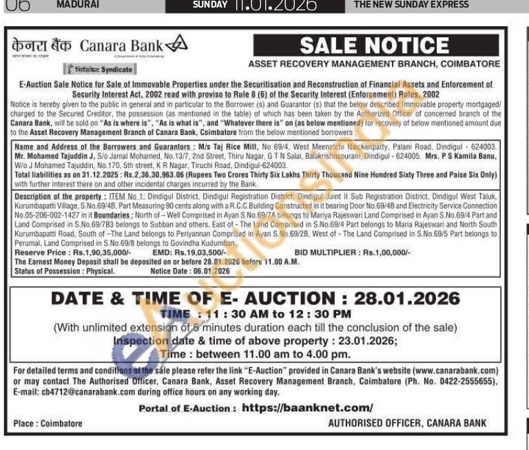 ITEM No. 1: Dindigul District, Dindigul Registration District, Dindigul Joint II Sub Registration District, Dindigul West Taluk,